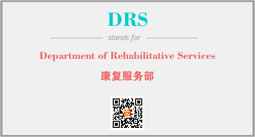 上述内容是“Department of Rehabilitative Services”作为“DRS”的缩写,解释为“康复服务部”时的信息,以及英文缩略词DRS所代表的英文单词,其对应的中文拼音、详细解释以及在英文中的流行度和相关分类、应用领域及应用示例等。