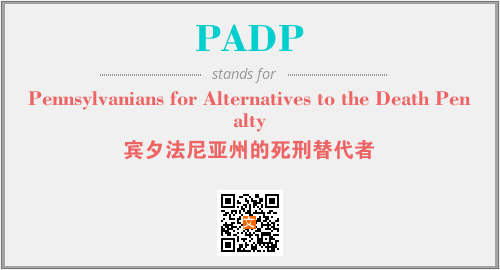 上述内容是“Pennsylvanians for Alternatives to the Death Penalty”作为“PADP”的缩写,解释为“宾夕法尼亚州的死刑替代者”时的信息,以及英文缩略词PADP所代表的英文单词,其对应的中文拼音、详细解释以及在英文中的流行度和相关分类、应用领域及应用示例等。