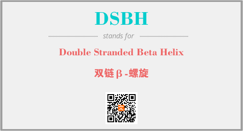 英文缩略词“DSBH”经常作为“Double Stranded Beta Helix”的英文缩写来使用,中文表示:“双链β-螺旋”。本文将详细介绍英文缩写词DSBH所代表英文单词,其对应的中文拼音、详细解释以及在英语中的流行度。此外,还有关于缩略词DSBH的分类、应用领域及相关应用示例等。