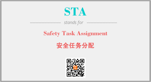 上述内容是“Safety Task Assignment”作为“STA”的缩写,解释为“安全任务分配”时的信息,以及英文缩略词STA所代表的英文单词,其对应的中文拼音、详细解释以及在英文中的流行度和相关分类、应用领域及应用示例等。