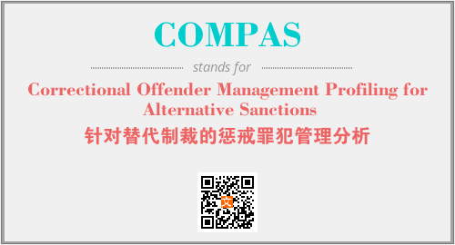 上述内容是“Correctional Offender Management Profiling for Alternative Sanctions”作为“COMPAS”的缩写,解释为“针对替代制裁的惩戒罪犯管理分析”时的信息,以及英文缩略词COMPAS所代表的英文单词,其对应的中文拼音、详细解释以及在英文中的流行度和相关分类、应用领域及应用示例等。