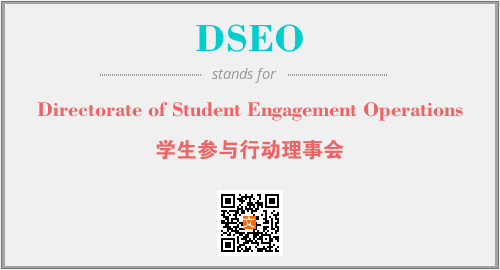 上述内容是“Directorate of Student Engagement Operations”作为“DSEO”的缩写,解释为“学生参与行动理事会”时的信息,以及英文缩略词DSEO所代表的英文单词,其对应的中文拼音、详细解释以及在英文中的流行度和相关分类、应用领域及应用示例等。