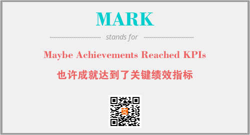 上述内容是“Maybe Achievements Reached KPIs”作为“MARK”的缩写,解释为“也许成就达到了关键绩效指标”时的信息,以及英文缩略词MARK所代表的英文单词,其对应的中文拼音、详细解释以及在英文中的流行度和相关分类、应用领域及应用示例等。