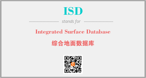 英文缩略词“ISD”经常作为“Integrated Surface Database”的英文缩写来使用,中文表示:“综合地面数据库”。本文将详细介绍英文缩写词ISD所代表英文单词,其对应的中文拼音、详细解释以及在英语中的流行度。此外,还有关于缩略词ISD的分类、应用领域及相关应用示例等。