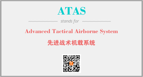 上述内容是“Advanced Tactical Airborne System”作为“ATAS”的缩写,解释为“先进战术机载系统”时的信息,以及英文缩略词ATAS所代表的英文单词,其对应的中文拼音、详细解释以及在英文中的流行度和相关分类、应用领域及应用示例等。