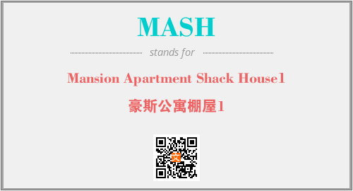 英文缩略词“MASH”经常作为“Mansion Apartment Shack House1”的英文缩写来使用,中文表示:“豪斯公寓棚屋1”。本文将详细介绍英文缩写词MASH所代表英文单词,其对应的中文拼音、详细解释以及在英语中的流行度。此外,还有关于缩略词MASH的分类、应用领域及相关应用示例等。