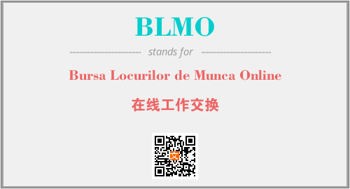 上述内容是“Bursa Locurilor de Munca Online”作为“BLMO”的缩写,解释为“在线工作交换”时的信息,以及英文缩略词BLMO所代表的英文单词,其对应的中文拼音、详细解释以及在英文中的流行度和相关分类、应用领域及应用示例等。