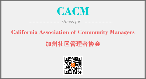 上述内容是“California Association of Community Managers”作为“CACM”的缩写,解释为“加州社区管理者协会”时的信息,以及英文缩略词CACM所代表的英文单词,其对应的中文拼音、详细解释以及在英文中的流行度和相关分类、应用领域及应用示例等。