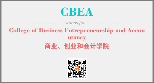英文缩略词“CBEA”经常作为“College of Business Entrepreneurship and Accountancy”的英文缩写来使用,中文表示:“商业、创业和会计学院”。本文将详细介绍英文缩写词CBEA所代表英文单词,其对应的中文拼音、详细解释以及在英语中的流行度。此外,还有关于缩略词CBEA的分类、应用领域及相关应用示例等。