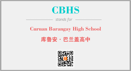 以上为Curuan Barangay High School英文缩略词CBHS的中文解释,以及该英文缩写在英语的流行度、分类和应用领域方面的信息。