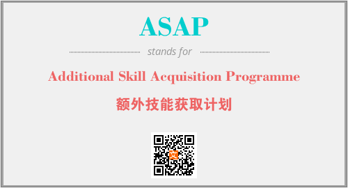 以上为Additional Skill Acquisition Programme英文缩略词ASAP的中文解释,以及该英文缩写在英语的流行度、分类和应用领域方面的信息。