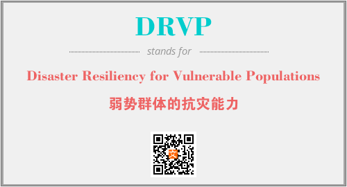 上述内容是“Disaster Resiliency for Vulnerable Populations”作为“DRVP”的缩写,解释为“弱势群体的抗灾能力”时的信息,以及英文缩略词DRVP所代表的英文单词,其对应的中文拼音、详细解释以及在英文中的流行度和相关分类、应用领域及应用示例等。