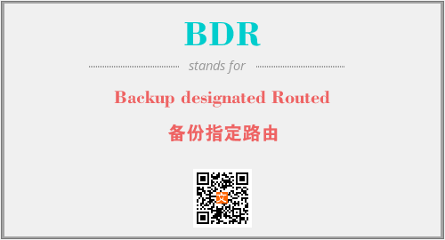 英文缩略词“BDR”经常作为“Backup designated Routed”的英文缩写来使用,中文表示:“备份指定路由”。本文将详细介绍英文缩写词BDR所代表英文单词,其对应的中文拼音、详细解释以及在英语中的流行度。此外,还有关于缩略词BDR的分类、应用领域及相关应用示例等。