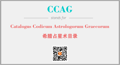 英文缩略词“CCAG”经常作为“Catalogus Codicum Astrologorum Graecorum”的英文缩写来使用,中文表示:“希腊占星术目录”。本文将详细介绍英文缩写词CCAG所代表英文单词,其对应的中文拼音、详细解释以及在英语中的流行度。此外,还有关于缩略词CCAG的分类、应用领域及相关应用示例等。