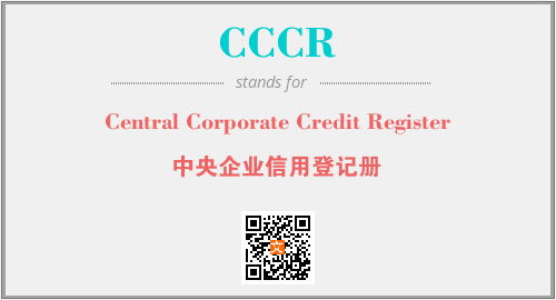 上述内容是“Central Corporate Credit Register”作为“CCCR”的缩写,解释为“中央企业信用登记册”时的信息,以及英文缩略词CCCR所代表的英文单词,其对应的中文拼音、详细解释以及在英文中的流行度和相关分类、应用领域及应用示例等。