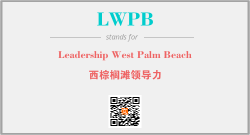 上述内容是“Leadership West Palm Beach”作为“LWPB”的缩写,解释为“西棕榈滩领导力”时的信息,以及英文缩略词LWPB所代表的英文单词,其对应的中文拼音、详细解释以及在英文中的流行度和相关分类、应用领域及应用示例等。
