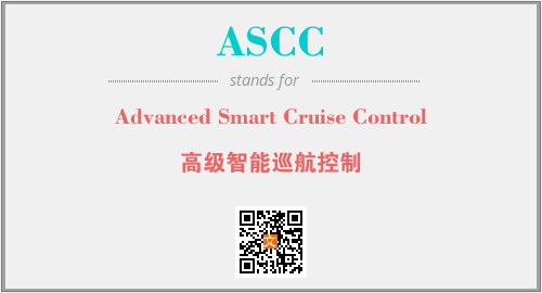 英文缩略词“ASCC”经常作为“Advanced Smart Cruise Control”的英文缩写来使用,中文表示:“高级智能巡航控制”。本文将详细介绍英文缩写词ASCC所代表英文单词,其对应的中文拼音、详细解释以及在英语中的流行度。此外,还有关于缩略词ASCC的分类、应用领域及相关应用示例等。