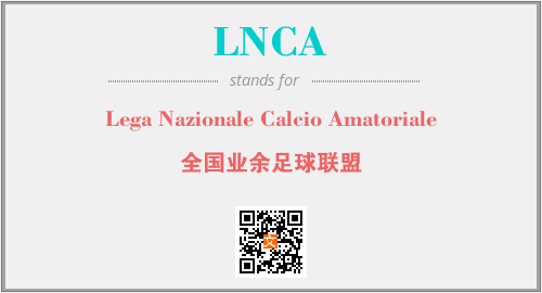 上述内容是“Lega Nazionale Calcio Amatoriale”作为“LNCA”的缩写,解释为“全国业余足球联盟”时的信息,以及英文缩略词LNCA所代表的英文单词,其对应的中文拼音、详细解释以及在英文中的流行度和相关分类、应用领域及应用示例等。