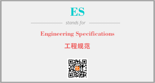 英文缩略词“ES”经常作为“Engineering Specifications”的英文缩写来使用,中文表示:“工程规范”。本文将详细介绍英文缩写词ES所代表英文单词,其对应的中文拼音、详细解释以及在英语中的流行度。此外,还有关于缩略词ES的分类、应用领域及相关应用示例等。
