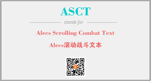 英文缩略词“ASCT”经常作为“Alecs Scrolling Combat Text”的英文缩写来使用,中文表示:“Alecs滚动战斗文本”。本文将详细介绍英文缩写词ASCT所代表英文单词,其对应的中文拼音、详细解释以及在英语中的流行度。此外,还有关于缩略词ASCT的分类、应用领域及相关应用示例等。