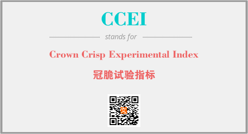 上述内容是“Crown Crisp Experimental Index”作为“CCEI”的缩写,解释为“冠脆试验指标”时的信息,以及英文缩略词CCEI所代表的英文单词,其对应的中文拼音、详细解释以及在英文中的流行度和相关分类、应用领域及应用示例等。