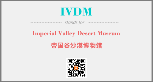 以上为Imperial Valley Desert Museum英文缩略词IVDM的中文解释,以及该英文缩写在英语的流行度、分类和应用领域方面的信息。