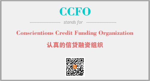 上述内容是“Conscientious Credit Funding Organization”作为“CCFO”的缩写,解释为“认真的信贷融资组织”时的信息,以及英文缩略词CCFO所代表的英文单词,其对应的中文拼音、详细解释以及在英文中的流行度和相关分类、应用领域及应用示例等。