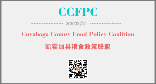 上述内容是“Cuyahoga County Food Policy Coalition”作为“CCFPC”的缩写,解释为“凯霍加县粮食政策联盟”时的信息,以及英文缩略词CCFPC所代表的英文单词,其对应的中文拼音、详细解释以及在英文中的流行度和相关分类、应用领域及应用示例等。
