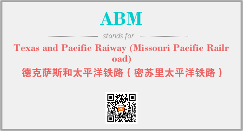 以上为Texas and Pacific Raiway (Missouri Pacific Railroad)英文缩略词ABM的中文解释,以及该英文缩写在英语的流行度、分类和应用领域方面的信息。