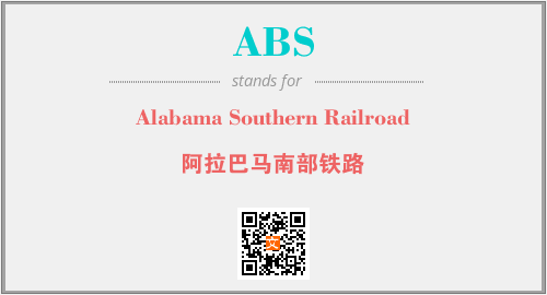 上述内容是“Alabama Southern Railroad”作为“ABS”的缩写,解释为“阿拉巴马南部铁路”时的信息,以及英文缩略词ABS所代表的英文单词,其对应的中文拼音、详细解释以及在英文中的流行度和相关分类、应用领域及应用示例等。