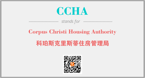 英文缩略词“CCHA”经常作为“Corpus Christi Housing Authority”的英文缩写来使用,中文表示:“科珀斯克里斯蒂住房管理局”。本文将详细介绍英文缩写词CCHA所代表英文单词,其对应的中文拼音、详细解释以及在英语中的流行度。此外,还有关于缩略词CCHA的分类、应用领域及相关应用示例等。