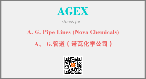 上述内容是“A. G. Pipe Lines (Nova Chemicals)”作为“AGEX”的缩写,解释为“A、 G.管道(诺瓦化学公司)”时的信息,以及英文缩略词AGEX所代表的英文单词,其对应的中文拼音、详细解释以及在英文中的流行度和相关分类、应用领域及应用示例等。