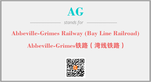 上述内容是“Abbeville-Grimes Railway (Bay Line Railroad)”作为“AG”的缩写,解释为“Abbeville-Grimes铁路(湾线铁路)”时的信息,以及英文缩略词AG所代表的英文单词,其对应的中文拼音、详细解释以及在英文中的流行度和相关分类、应用领域及应用示例等。