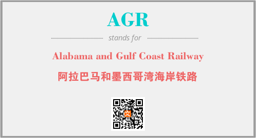 上述内容是“Alabama and Gulf Coast Railway”作为“AGR”的缩写,解释为“阿拉巴马和墨西哥湾海岸铁路”时的信息,以及英文缩略词AGR所代表的英文单词,其对应的中文拼音、详细解释以及在英文中的流行度和相关分类、应用领域及应用示例等。