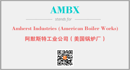 上述内容是“Amherst Industries (American Boiler Works)”作为“AMBX”的缩写,解释为“阿默斯特工业公司(美国锅炉厂)”时的信息,以及英文缩略词AMBX所代表的英文单词,其对应的中文拼音、详细解释以及在英文中的流行度和相关分类、应用领域及应用示例等。