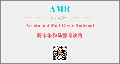 上述内容是“Arcata and Mad River Railroad”作为“AMR”的缩写,解释为“阿卡塔和马德河铁路”时的信息,以及英文缩略词AMR所代表的英文单词,其对应的中文拼音、详细解释以及在英文中的流行度和相关分类、应用领域及应用示例等。
