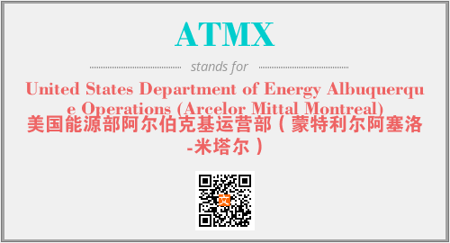上述内容是“United States Department of Energy Albuquerque Operations (Arcelor Mittal Montreal)”作为“ATMX”的缩写,解释为“美国能源部阿尔伯克基运营部(蒙特利尔阿塞洛-米塔尔)”时的信息,以及英文缩略词ATMX所代表的英文单词,其对应的中文拼音、详细解释以及在英文中的流行度和相关分类、应用领域及应用示例等。