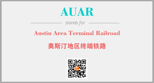 上述内容是“Austin Area Terminal Railroad”作为“AUAR”的缩写,解释为“奥斯汀地区终端铁路”时的信息,以及英文缩略词AUAR所代表的英文单词,其对应的中文拼音、详细解释以及在英文中的流行度和相关分类、应用领域及应用示例等。