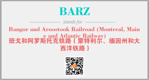 上述内容是“Bangor and Aroostook Railroad (Montreal, Maine and Atlantic Railway)”作为“BARZ”的缩写,解释为“班戈和阿罗斯托克铁路(蒙特利尔、缅因州和大西洋铁路)”时的信息,以及英文缩略词BARZ所代表的英文单词,其对应的中文拼音、详细解释以及在英文中的流行度和相关分类、应用领域及应用示例等。