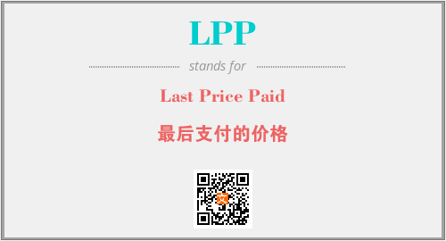 以上为Last Price Paid英文缩略词LPP的中文解释,以及该英文缩写在英语的流行度、分类和应用领域方面的信息。