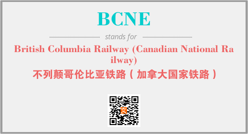上述内容是“British Columbia Railway (Canadian National Railway)”作为“BCNE”的缩写,解释为“不列颠哥伦比亚铁路(加拿大国家铁路)”时的信息,以及英文缩略词BCNE所代表的英文单词,其对应的中文拼音、详细解释以及在英文中的流行度和相关分类、应用领域及应用示例等。