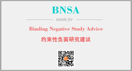 上述内容是“Binding Negative Study Advice”作为“BNSA”的缩写,解释为“约束性负面研究建议”时的信息,以及英文缩略词BNSA所代表的英文单词,其对应的中文拼音、详细解释以及在英文中的流行度和相关分类、应用领域及应用示例等。