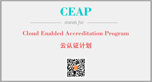 英文缩略词“CEAP”经常作为“Cloud Enabled Accreditation Program”的英文缩写来使用,中文表示:“云认证计划”。本文将详细介绍英文缩写词CEAP所代表英文单词,其对应的中文拼音、详细解释以及在英语中的流行度。此外,还有关于缩略词CEAP的分类、应用领域及相关应用示例等。