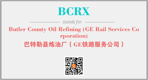 上述内容是“Butler County Oil Refining (GE Rail Services Corporation)”作为“BCRX”的缩写,解释为“巴特勒县炼油厂(GE铁路服务公司)”时的信息,以及英文缩略词BCRX所代表的英文单词,其对应的中文拼音、详细解释以及在英文中的流行度和相关分类、应用领域及应用示例等。