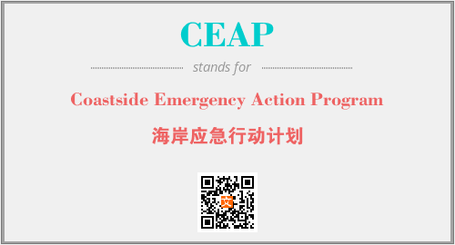 英文缩略词“CEAP”经常作为“Coastside Emergency Action Program”的英文缩写来使用,中文表示:“海岸应急行动计划”。本文将详细介绍英文缩写词CEAP所代表英文单词,其对应的中文拼音、详细解释以及在英语中的流行度。此外,还有关于缩略词CEAP的分类、应用领域及相关应用示例等。