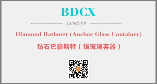 上述内容是“Diamond Bathurst (Anchor Glass Container)”作为“BDCX”的缩写,解释为“钻石巴瑟斯特(锚玻璃容器)”时的信息,以及英文缩略词BDCX所代表的英文单词,其对应的中文拼音、详细解释以及在英文中的流行度和相关分类、应用领域及应用示例等。