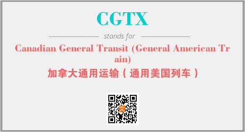 上述内容是“Canadian General Transit (General American Train)”作为“CGTX”的缩写,解释为“加拿大通用运输(通用美国列车)”时的信息,以及英文缩略词CGTX所代表的英文单词,其对应的中文拼音、详细解释以及在英文中的流行度和相关分类、应用领域及应用示例等。