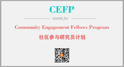 以上为Community Engagement Fellows Program英文缩略词CEFP的中文解释,以及该英文缩写在英语的流行度、分类和应用领域方面的信息。