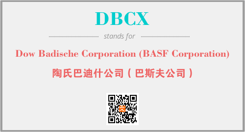 英文缩略词“DBCX”经常作为“Dow Badische Corporation (BASF Corporation)”的英文缩写来使用,中文表示:“陶氏巴迪什公司(巴斯夫公司)”。本文将详细介绍英文缩写词DBCX所代表英文单词,其对应的中文拼音、详细解释以及在英语中的流行度。此外,还有关于缩略词DBCX的分类、应用领域及相关应用示例等。