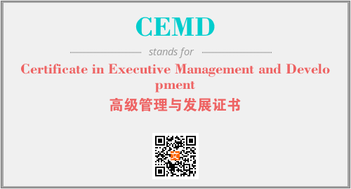 上述内容是“Certificate in Executive Management and Development”作为“CEMD”的缩写,解释为“高级管理与发展证书”时的信息,以及英文缩略词CEMD所代表的英文单词,其对应的中文拼音、详细解释以及在英文中的流行度和相关分类、应用领域及应用示例等。